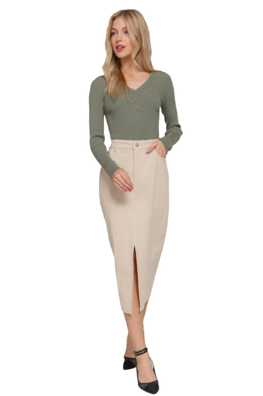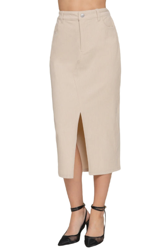 Front Open Slit Corduroy Midi Skirt