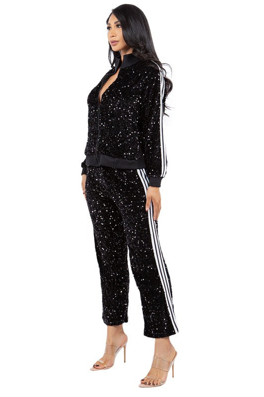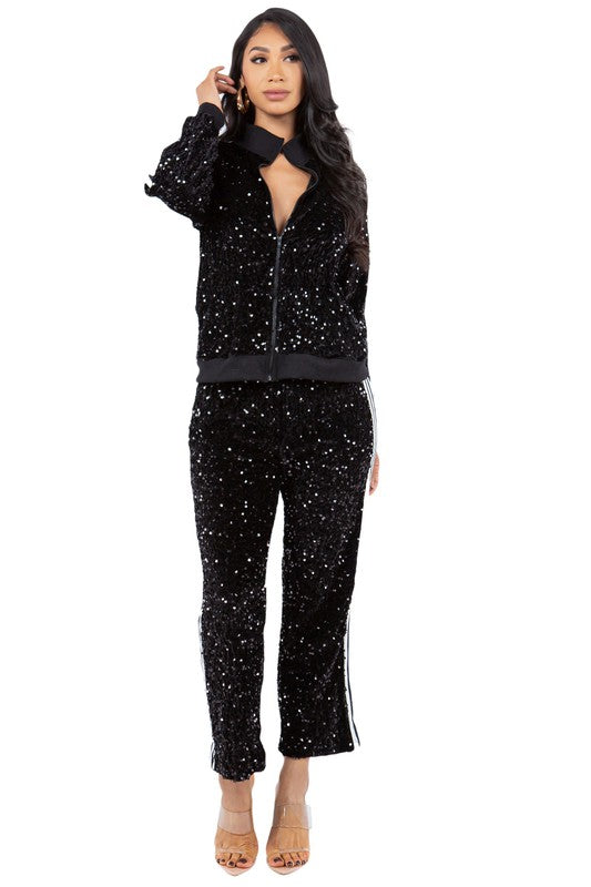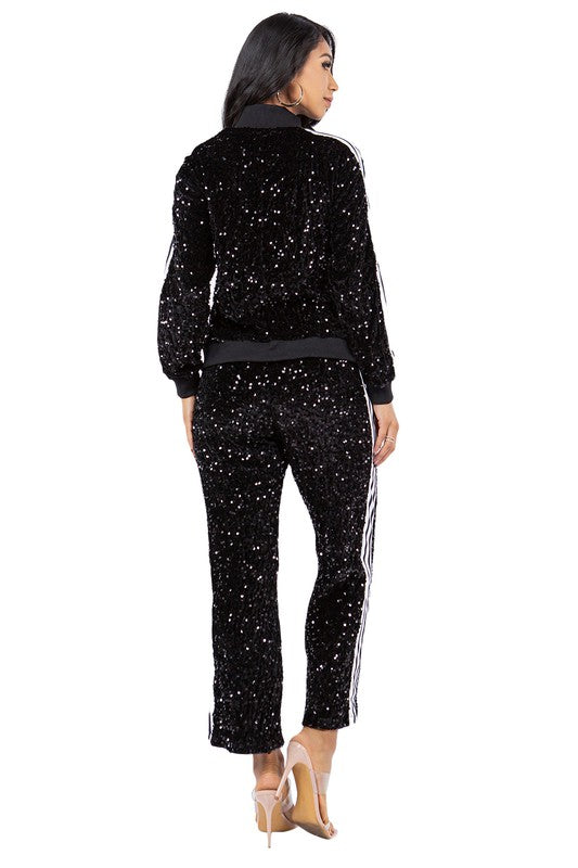 SEXY SEQUIN TWO PIECE PANT SET